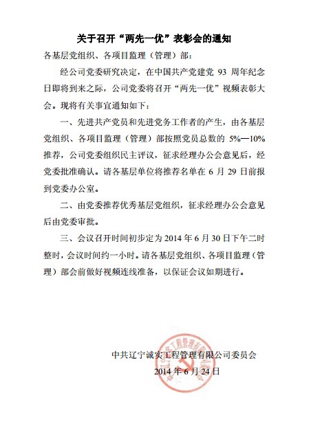 關于召開“兩先一優“表彰會的通知